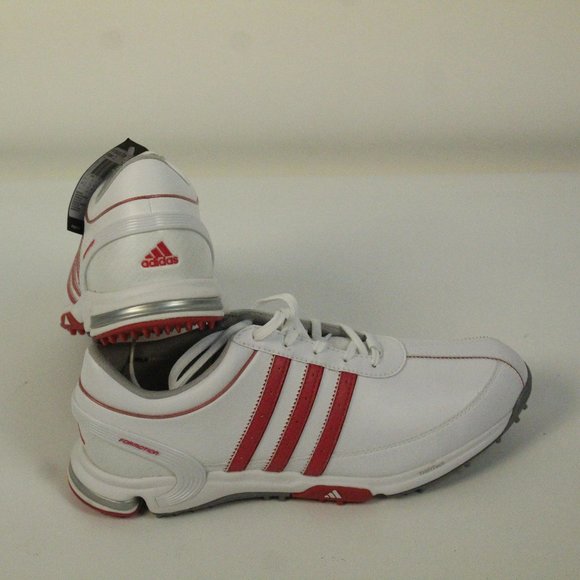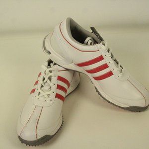 Adidas Traxion Lite FM Golf Shoes White/Hot Magenta Spike less ATT Technology provides hybrid performance suitable for the course, range and the shop. Engineered with materials that are both light weight and extremely comfortable. The Traxion Lite delivers the perfect blend of athletic style and all-around performance.