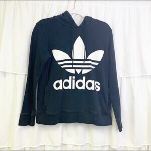 Adidas Trefoil Hoodie in Black/White Pockets Sweatshirt Size Small