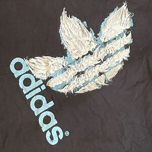 Adidas Trefoil Logo Graphic Tee Black White Blue Short Sleeve Crewneck Sample XL