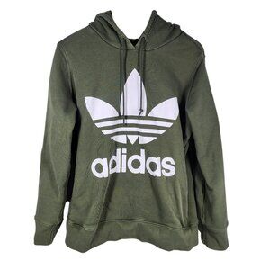 Adidas Trefoil Logo Hoodie Olive Green Cotton Blend Size L