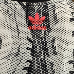 This Adidas Love Unites T-shirt dress offers a bold and vibrant design. Featuring a statement "Love Unites" graphic with multicolor accents on a black and white abstract pattern, this oversized dress ensures comfort and modern style. Made of 100% cotton, it’s perfect for casual outings or adding personality to your look.