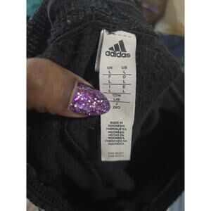 The Adidas Triple Black Sweatpants Track Pants in Men's Size Large are a stylish and comfortable option for activewear. These tapered sweatpants feature a drawstring closure and an elastic waist for a customized fit. Made from 100% polyester blended fabric, they are perfect for gym and training activities. The classic black color and Adidas branding make these pants a versatile and high-quality addition to any athletic wardrobe.