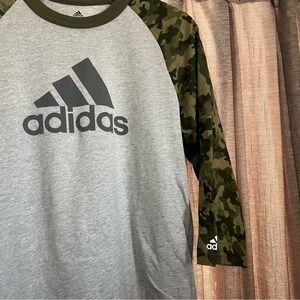 Adidas Triple Stripe Camo Print 3/4 Sleeve Baseball Shirt in Size Small