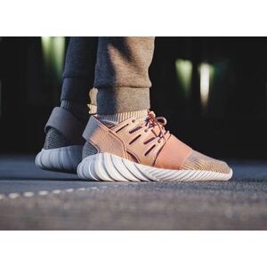 Adidas Tubular Doom Beige Pink Knit Ankle Sock Sneakers 11.5