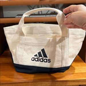 Chic Adidas tote with a cream canvas body. Black base and logo accent. Ideal for everyday use.