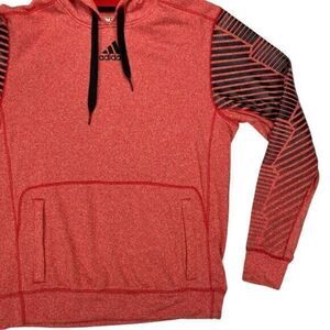 - Description: Adidas Ultimate Hoodie Mens Sz M Red Black Striped Climawarm Athletic Sweatshirt