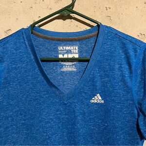 Adidas Ultimate Tee Womens M Blue Training Activewear Athleasure V-neck