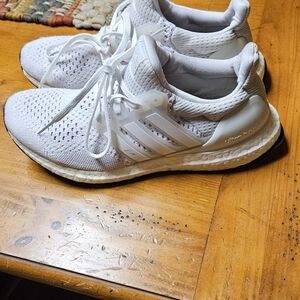 Stylish Adidas Ultra Boost sneakers in white. Perfect for casual wear.