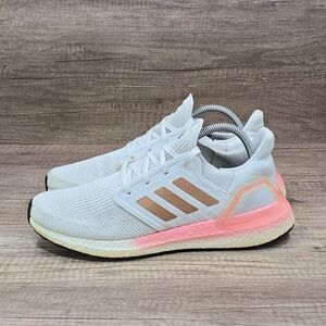 Adidas Ultraboost 20 Women's Sz 10 White Copper Flash Red Running Shoes (EG0724)