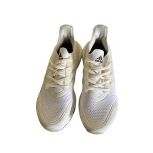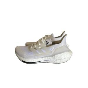 Men’s Adidas Ultraboost 21 Primeblue in Cloud White, cushioned Boost running shoe. Lightweight, responsive, and perfect for everyday running, walking, or gym training. Details Model: Ultraboost 21 Primeblue Color: Cloud White Men’s Size: 8.5 Upper: Primeknit+ Midsole: Boost Cushioning Outsole: Continental Rubber Sustainability: Primeblue recycled material