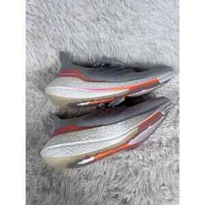 Color: Gray upper with pink and orange accents; white Boost midsole; translucent outsole