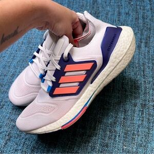 Adidas Ultraboost 22 Running Shoes in White Turbo Indigo Women's Size 9