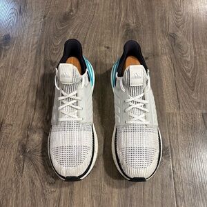 Adidas Ultraboost White Royal 2019 G54012 Running Shoes Mens Size 14. Pre owned, excellent used condition, minor wear marks and discoloration spots (SEE PICTURES). Adidas sneakers featuring a sleek white and black design. Highlighted with vibrant blue accents.