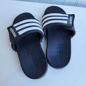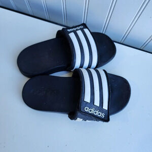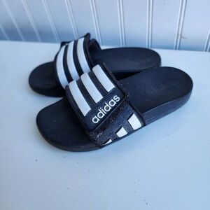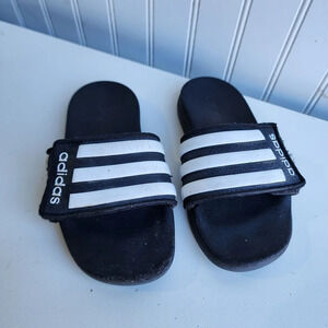 Adidas Unisex Kids' Slides Core Black White Cloud White Adjastable Sz 11k