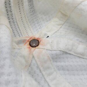 Fair looking hat. As you can see in the pictures, there is a red mark near the button underneath and the hat has markings all over the hat.