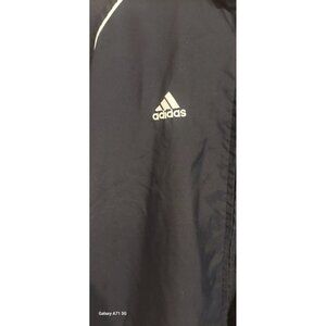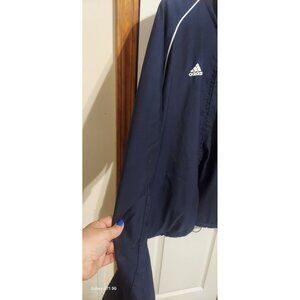 The Adidas University of Notre Dame Windbreaker is a size Extra Large XL NCAA full zip jacket in blue, officially licensed by the college. It features the Adidas brand and is designed for football fans of the Notre Dame Fighting Irish. This men's jacket is perfect for showing support for the team while staying warm and stylish on a chilly day.