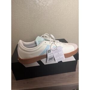 Brand new Adidas VL Court Base women’s sneakers in size 8.5. White upper with light blue stripes and a gum sole. Comes in original box with tags attached.