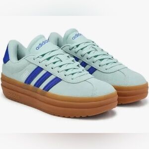 Chic light green sneakers with striking royal blue accents. Ideal for everyday style.