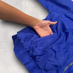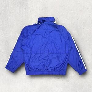 This classic Adidas vintage track jacket features a vibrant blue color with signature white stripes running down the sleeves. With a full zip-up front and elasticated cuffs and hem, this jacket is both functional and stylish. The lightweight material makes it perfect for layering during workouts or casual outings. Complete with the iconic Adidas logo on the chest, this retro piece channels a timeless sporty vibe that never goes out of style. 👟✨