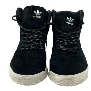 Adidas high-top sneakers,vintage Adidas shoes, core black sneakers, street style footwear, durable high-tops, casual chic sneakers, suede sneakers, athletic shoes, black and white