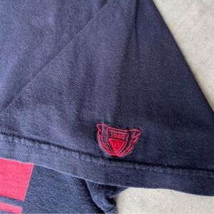 Adidas Vintage Y2K Classic Navy Blue T-Shirt with Red Striped Men’s Medium