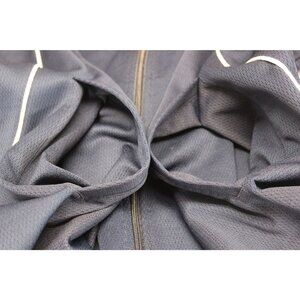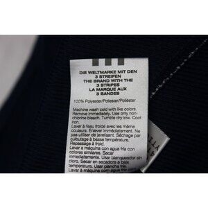 Pre-owned item with signs of use/wear: overall good shape, white stripes have spots of discolorations, sleeve has a small spot of discoloration.