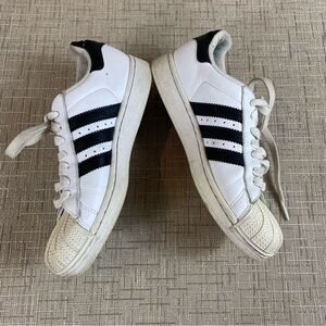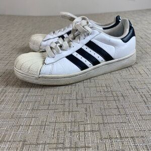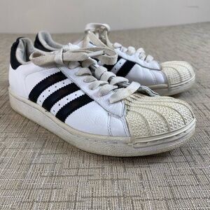 Adidas Vintage Youth Superstar Clamshell White Black Stripes Leather Sneaker Sz4