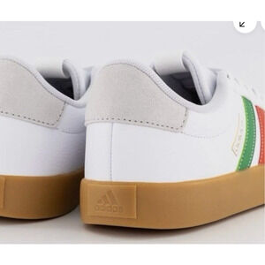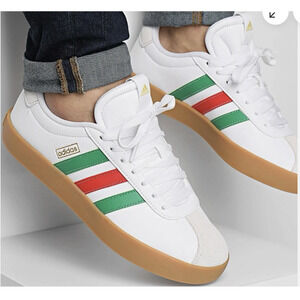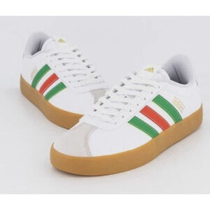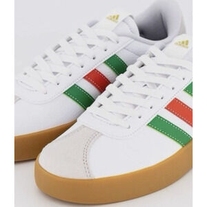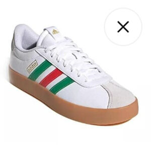 Step out in style with these Adidas VL Court 3.0 Men's Sneakers in a crisp white finish accented by classic green and red stripes. Featuring a comfortable synthetic upper and gum sole, ideal for skate, casual wear, or everyday style. Size 12 medium width fits true to size. Features: Classic Adidas stripes in green and red Durable gum sole for excellent grip Well-cushioned interior for all-day comfort Perfect for everyday wear, biking, walking, or casual outings Item Specifics Brand: Adidas Model: VL Court 3.0 Size: Men's 12 (Medium Width) Color: White with Green and Red stripes, Gum sole Style: Low-top sneaker Upper Material: Synthetic/Coated Leather and Suede Condition: New in Box
