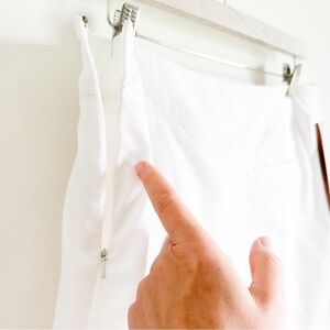 Adidas White Brown Stripe Golf Tennis Active Mini Skirt. Size 10. Good condition. There is a spot on the built in mesh shorts (pictured). Partial zip and hook eye closure at side. Stretchy. Front side slit.