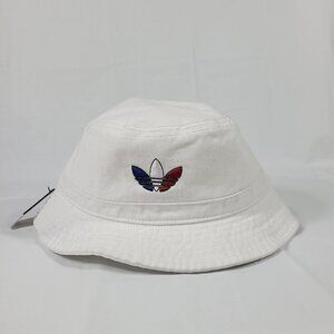 Adidas White Bucket Hat OSFA Red White Blue Logo Trefoil Cap Athleisure Hip Hop. New with tags, faint dirt marks