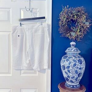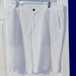 Adidas White Climalite Three Stripe Polyester & Spandex Athletic Golf Shorts
