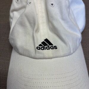 Classic white baseball cap with Adidas logo. Perfect for casual wear.