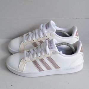 Adidas White Rose Gold Sneakers Women's 7 Cloudfoam Advantage Shoes Casual