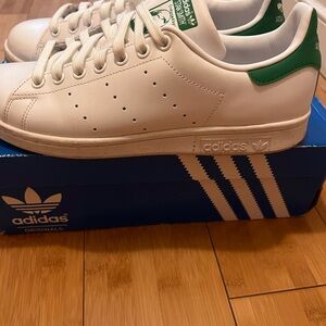 Classic Adidas white sneakers with green STAN SMITHS. Comfortable and stylish. Size 9