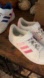 Classic white sneakers featuring pink stripes. Ideal for everyday style.