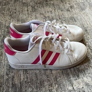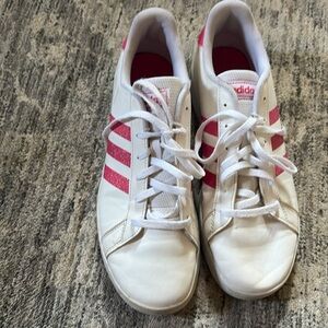 Adidas White Sneakers with Pink sparkle stripes - Classic - women’s size 7