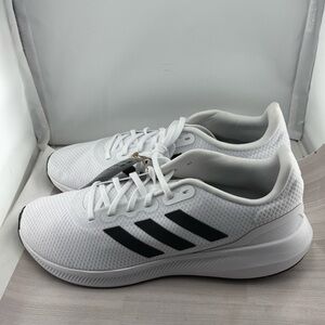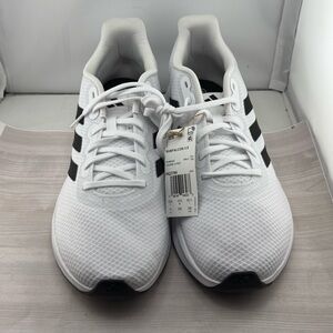 Experience the perfect blend of style and functionality with these adidas athletic shoes, featuring a sleek white mesh upper accented by iconic black stripes. Designed for optimal performance, these shoes offer a lightweight feel and superior comfort, making them ideal for both casual wear and intense workouts. The minimalist design ensures a modern look, while the durable rubber soles provide excellent traction and support.