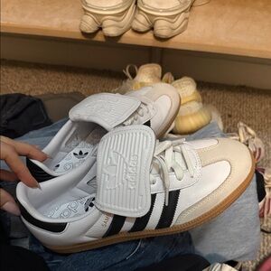 Adidas White and Black samba Sneakers fold over