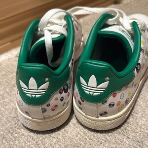 NWOT size 9 These Adidas sneakers boast a sleek white design with vibrant green accents, offering a fresh and modern look. Crafted for comfort and durability, they are perfect for everyday wear. The sneakers' timeless style makes them a versatile addition to any wardrobe.