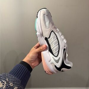 Stylish Adidas sneakers. White with pink accents. Comfortable and trendy.