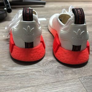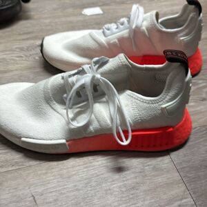 Adidas White and Red Running Sneakers Neon Bottoms Excellent Conditon - Size 6.5