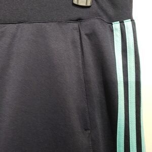 Adidas Wide Leg Pants Navy Blue w Teal Stripes Basketball Soccer Womens Large