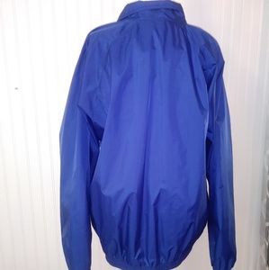 Royal blue with white and black trim on the shoulder. Full zip and has a mesh lining. The pockets also have zippers. This jacket is tagged as large, but I'm not 100% sure it's women's. Great condition and no flaws.