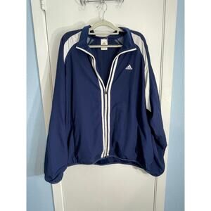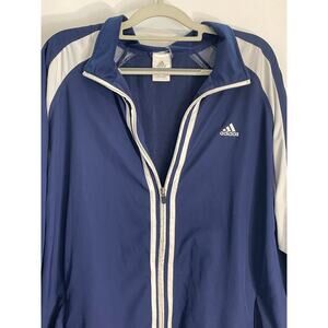 Adidas Windbreaker Track Jacket Large Blue Striped Athletic Workout Gym Jogging, in great condition.