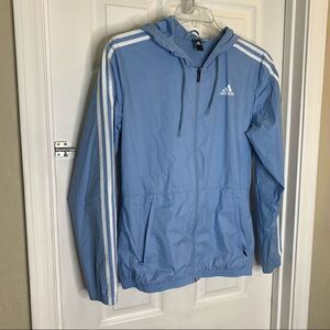 Adidas Windbreaker Jacket Light Blue Athletic Zip Front Size Large