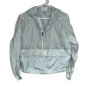 Adidas Woman’s Cropped Wind.rdy Sheer Packable Windbreaker Lite Blue Size XS. In great condition. Ask me anything!
