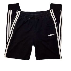 Adidas Women Black & White Side Stripes High Rise Joggers Size: Small