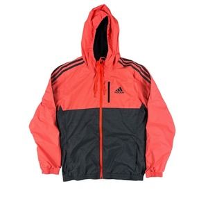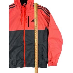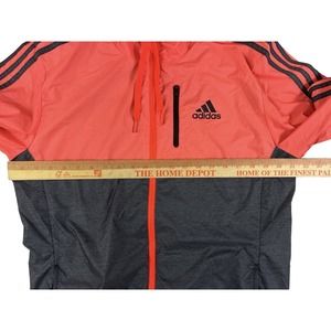Adidas Women Pink Gray Zip Up Windbreaker Hooded Jacket Sz M