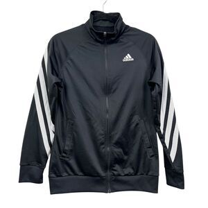 Adidas Women Track Jacket 3 Striped Sleeves Athletic Zip Up Black White Sz M