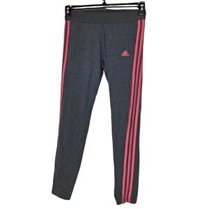 Adidas Women's 3S Leggings Size Medium Gray Pink Striped Workout Stretch